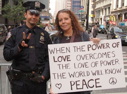That is what I see happening in this square. In the way you are feeding each other, keeping each other warm, sharing information freely and proving health care, meditation classes and empowerment training. My favorite sign here says, “I care about you.” In a culture that trains people to avoid each other’s gaze, to say, “Let them die,” that is a deeply radical statement.
