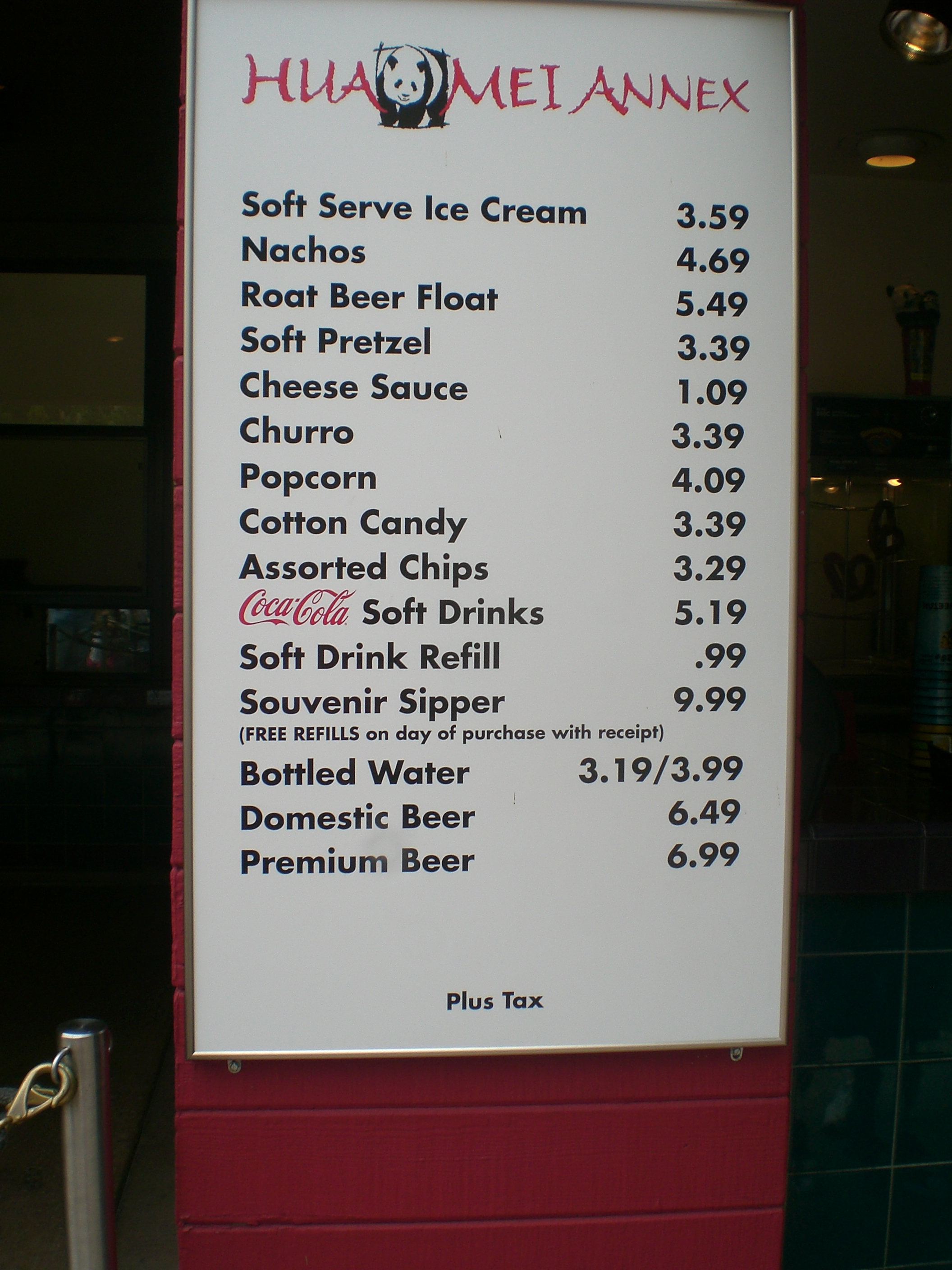 After being there for several hours, my son-in-law and grandson were hungry. They thought they would buy some chips to munch on while we continued to view the animals. However, the small package of chips was $3.75 and they elected not to purchase them. About an hour later, the hunger pangs were active again, and we stopped at one of the restaurants to see about grabbing something to eat. The prices were exorbitant – and we, once again elected to wait longer. (See menu). BTW – the menu is only for the “munchies”. The one for the meals was ridiculously high. One of the amusing thing to me – and by now you know that I have a macabre sense of humor – was the sign for the “ATM” machine. I am used to see $$$ telling me how expensive a restaurant, a hotel, etc., might be. Look at the picture of the ATM. I wonder if the fees for using it were enormous.