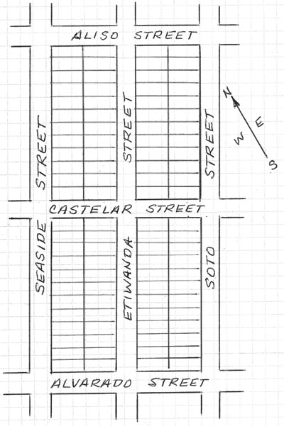 The northern portion of the DePuy subdivision between Castelar and Aliso (Valeta) Streets was apparently never built, probably because it went through a slough. That slough has since been drained and the area is now occupied by Nimitz Boulevard and several apartment buildings. Why plan a subdivision in a slough? That’s part of the mystery.