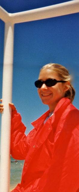 A young Sarah Boot as lifeguard on the shores of Lake Michigan.