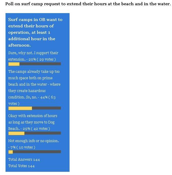 In the third OB Rag poll that we recently ran for a week, we asked our readers about the surf camps in OB requesting an extension of the time allowed in the ocean and on the beach.