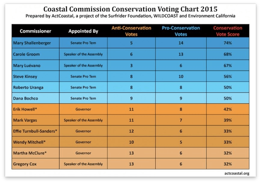 Posted in California, Civil Rights, Environment, History, Ocean Beach Coastal Commissioners’ Voting Records on Environment – 2015 Source February 11, 2016 Leave a Comment on Coastal Commissioners’ Voting Records on Environment – 2015 0 Likes 247 Views Click on image for larger version you can actually read.. Related Share: FacebookLinkedinRedditMixEmail Author: Source
