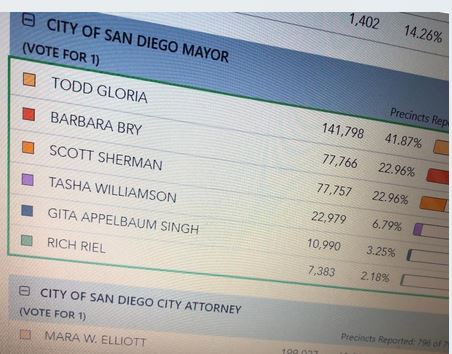 Bry’s Lead Expands to 444 Votes Over Sherman for Second Slot in Vote for San Diego Mayor