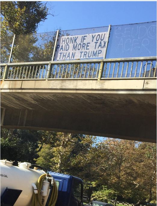 The Resister Sisters of Ocean Beach hung another sign over the northbound 163 in beautiful Balboa Park Monday, just in time for the afternoon rush hour traffic.