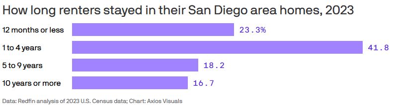 Axios San Diego reports that, “Nearly 17% of San Diego renters have lived in their homes for at least 10 years, up from about 11% a decade ago, according to a Redfin analysis of census data.”