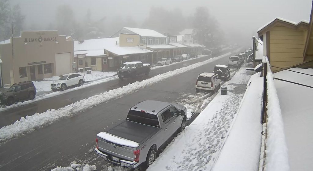 Once again, and in the spirit of one picture says a 1,000 words, we check in with our usual live web cam sites in our local mountains. See for yourself the amount of snow that has been dumped on the upper elevations like the Mount Laguna Lodge at 6,000 feet.