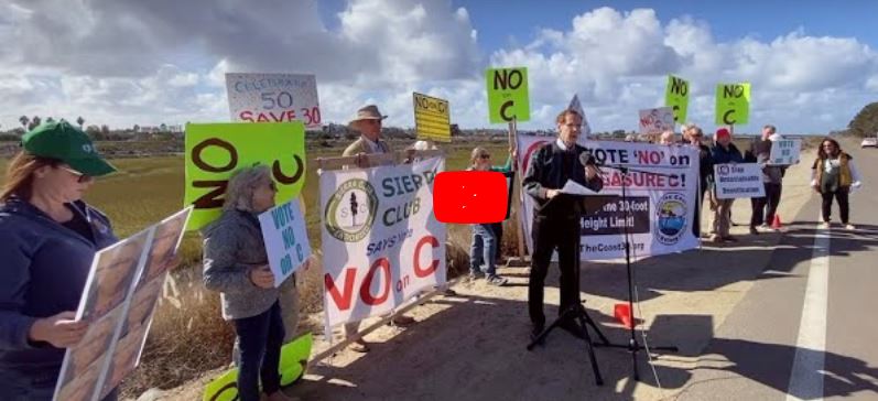 There is a coming together today, Thursday, of all the various groups and city council candidates who want to save the 30-foot height limit and oppose Measure C. It’s along Sea World Drive at 11 am.