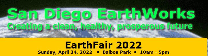 EarthFair is coming Sunday April 24th Our annual EarthFair in Balboa Park is the largest free annual environmental fair in the world. Each year, the EarthFair draws around 50,000 visitors looking for ways to live a more sustainable life and support a clean, healthy, prosperous environment – and have a great day in the park!