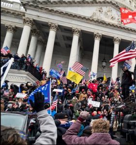 Referring, of course to the scene, in the US Capitol Building on January 6, 2021: a vision of huffing and puffing and blowing your house down mentality dialed up a billion degrees, treason in the form of pushing and shoving and smashing and pummeling, a tearing of the fabric of our democracy.