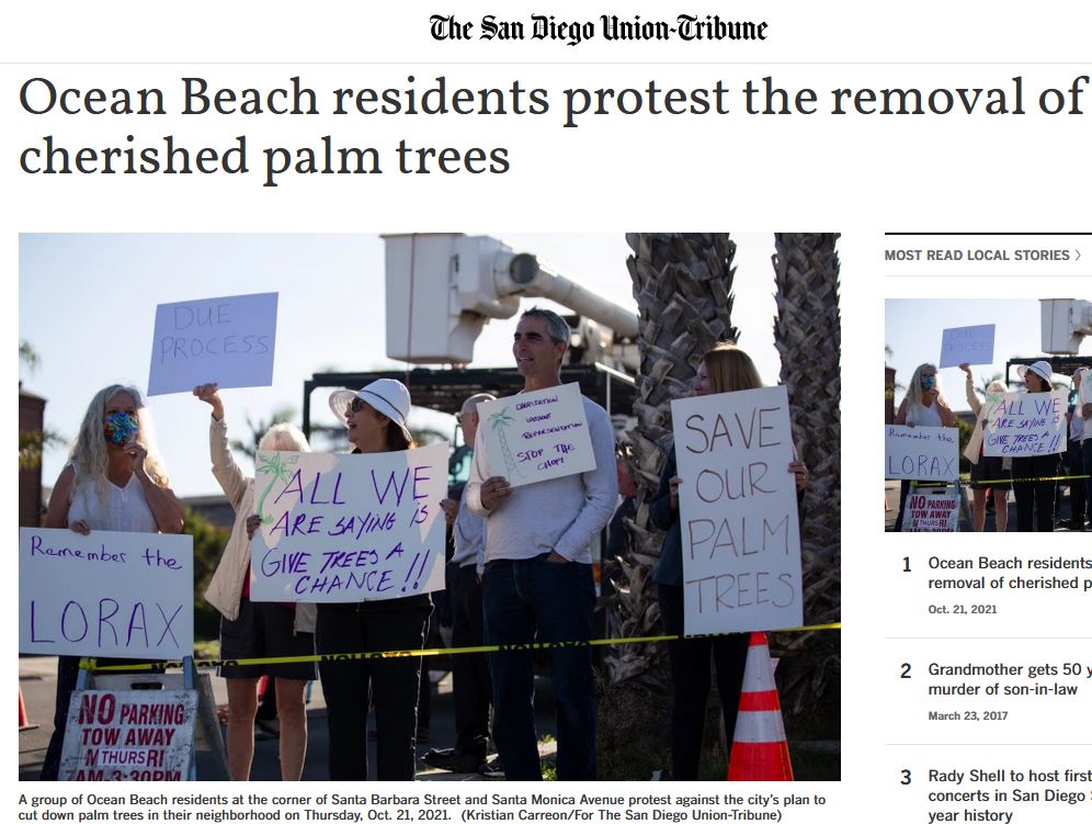 Here are other media reports on the Palm Tree controversy raging in Point Loma this week.
