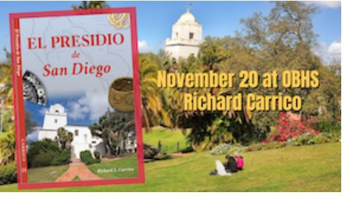Join the OBHS, November 20, 2025, at 7 pm, “El Presidio”, featuring Richard Carrico, at Water’s Edge Community, 1984 Sunset Cliffs Blvd., O.B.